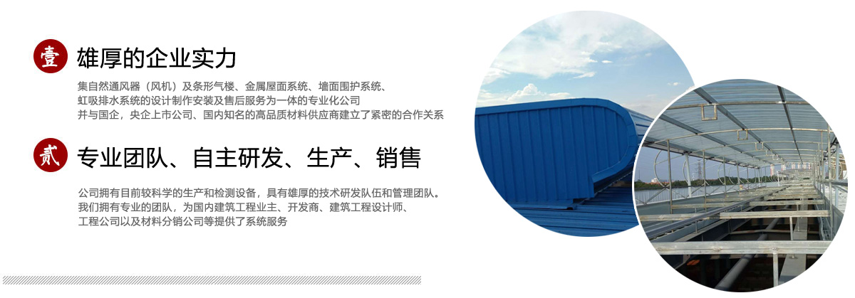 常州克維泰建筑工程有限公司是一家以自然通風器(風機)及條形氣樓、排煙天窗、金屬屋面系統、墻面圍護系統、虹吸排水系統的設計制作安裝及售后服務為一體的專業化公司,公司一直致力于鋼結構維護版塊,并與國企,央企上市公司、國內知名的高品質材料供應商建立了緊密的合作關系,為國內建筑工程業主、開發商、建筑工程設計師、工程公司以及材料分銷公司等提供了全面的系統服務。