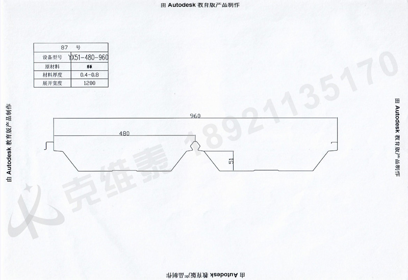 ![]() 產品名稱:87屋面板YX51-480-960