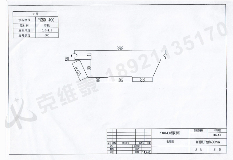 ![]() 產品名稱:91屋面板YX80-400