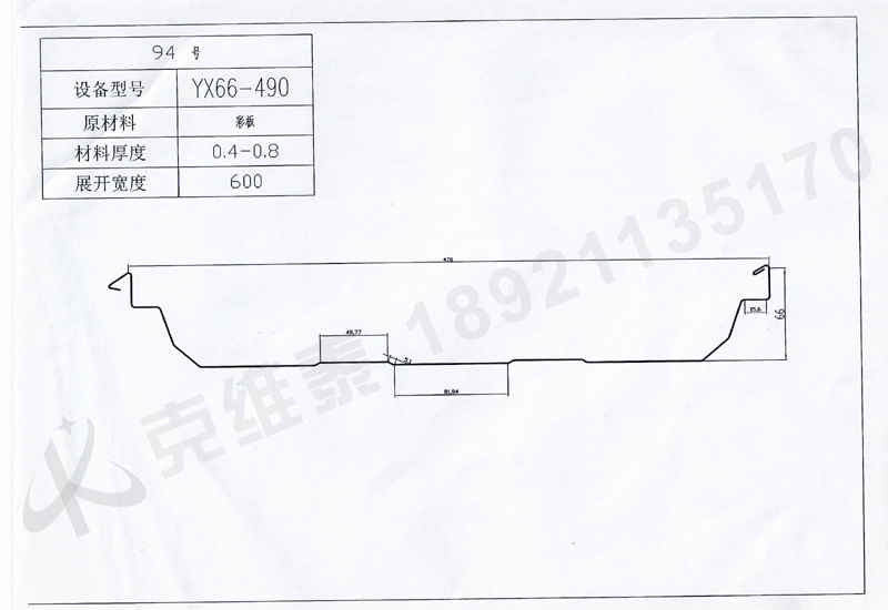 ![]() 產品名稱:94屋面板YX66-490